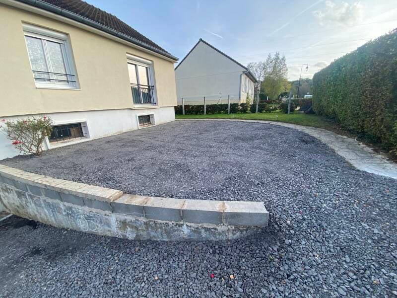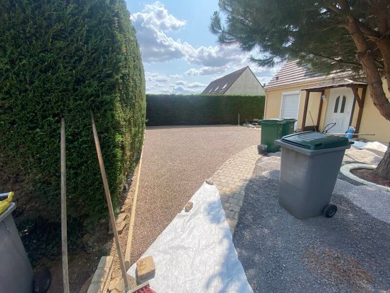 Réalisation d'une allée carrossable en grave calcaire 0,20 finitions en gravier, coller effet brillant